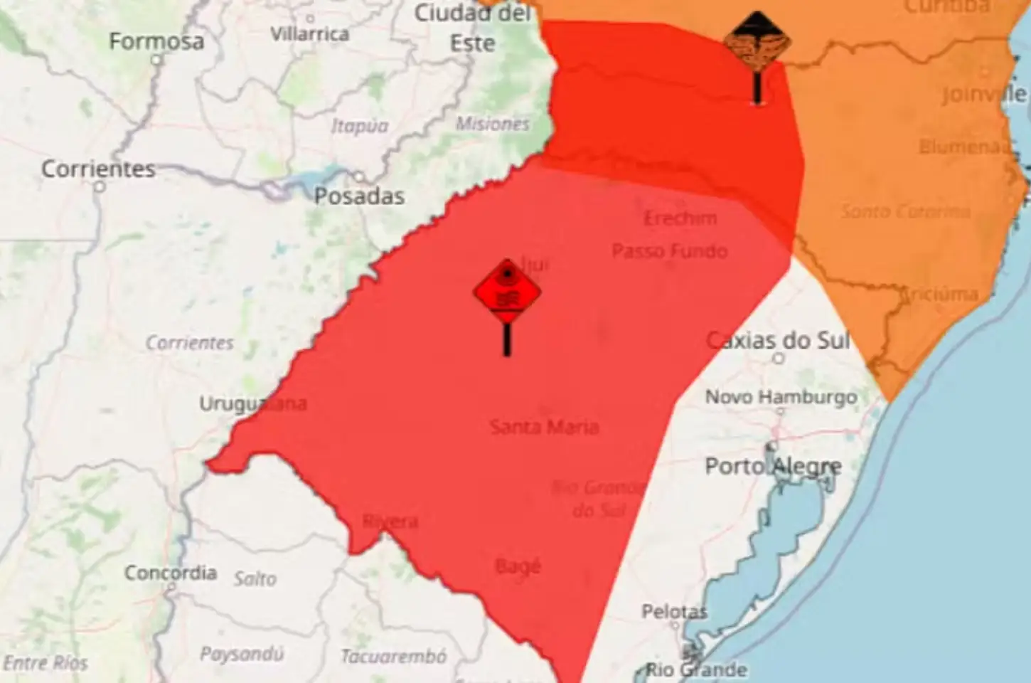 Ao todo, são mais de 500 munícipios atingidos. As áreas afetadas pelo aviso incluem as regiões Serrana, Oeste Catarinense e Norte Catarinense, além de amplas áreas do Paraná e do Rio Grande do Sul, como Sudoeste Paranaense, Sudeste Paranaense, Centro-Sul Paranaense, Sudoeste Rio-grandense, Noroeste Rio-grandense, Nordeste Rio-grandense, Centro Ocidental Rio-grandense, Centro Oriental Rio-grandense e Sudeste Rio-grandense.